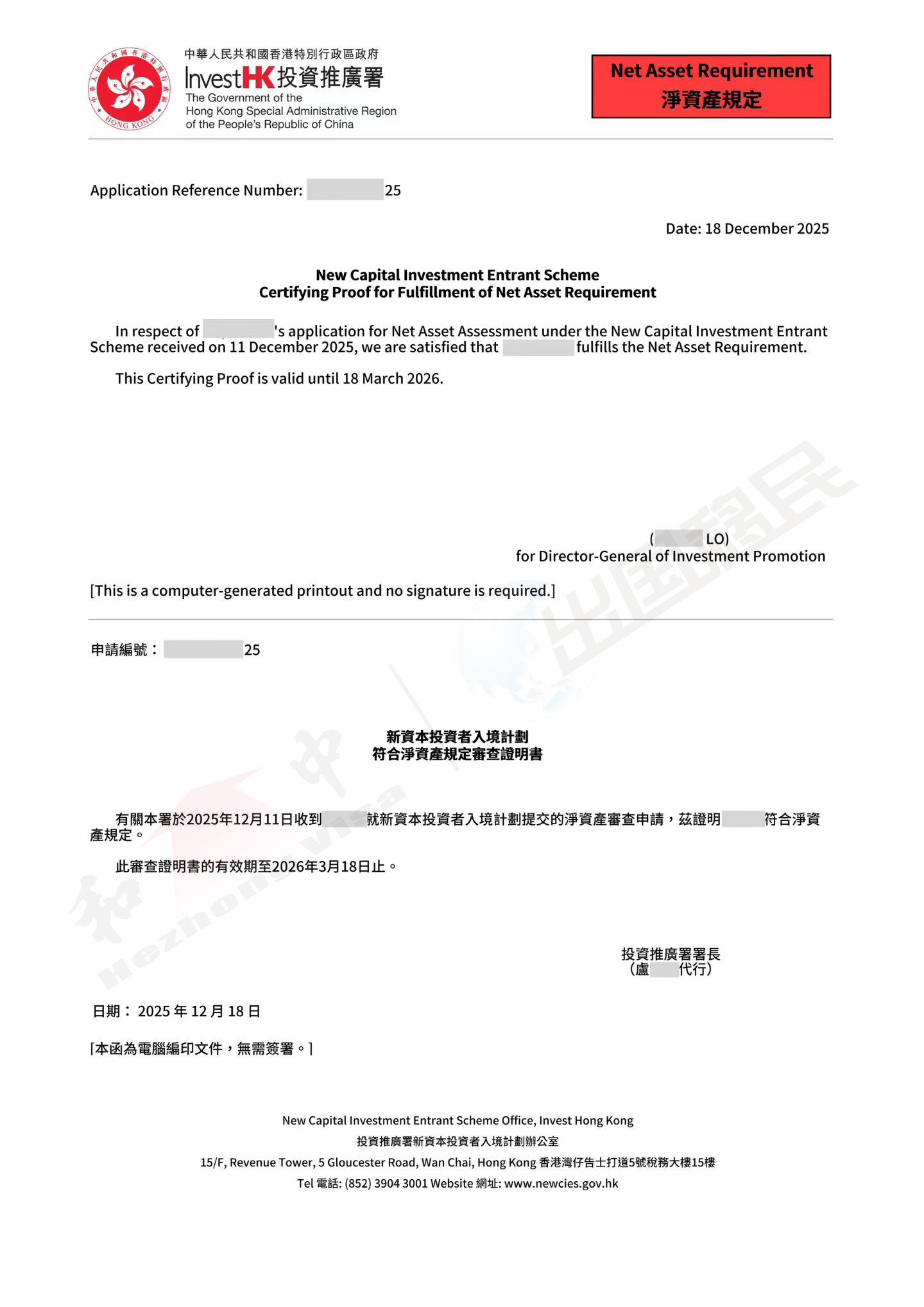 投資移民淨資產審查完成